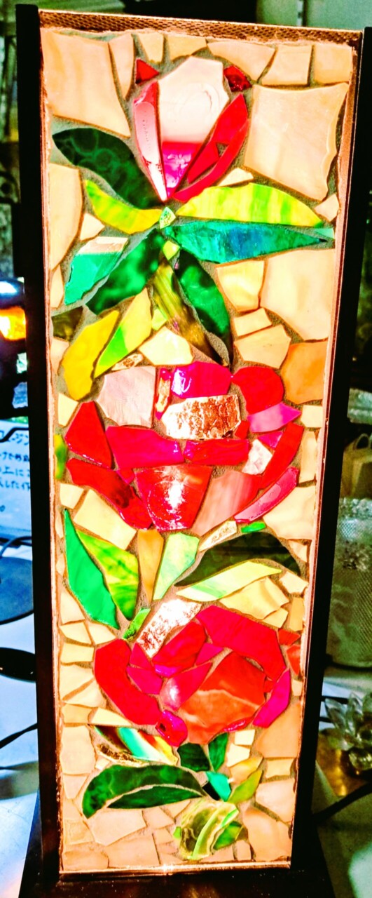 ステンドグラスのガラスで、モザイクアートランプ制作の特別講座を開催しました。