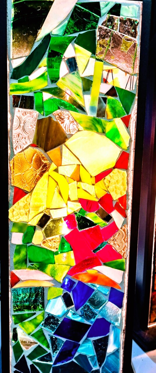 アンティークガラスやダルチップや貴重なガラス、100種類以上の中から自分の好きなガラスを自由に選んで、自分の作りたいデザインで、モザイクアートに挑戦してみました。普段のステンドグラス制作と違って、自由に、思いのままにガラスを置いて、仕上げていきました。また次回は2026年1月17日(空き人数1名)モザイクアート特別教室開催予定です。教室会員の皆さんは、普段のステンドグラス作りに加えて、特別講習にも積極的に参加して、いろんなスキルを習得しています。一般の方も参加できます。