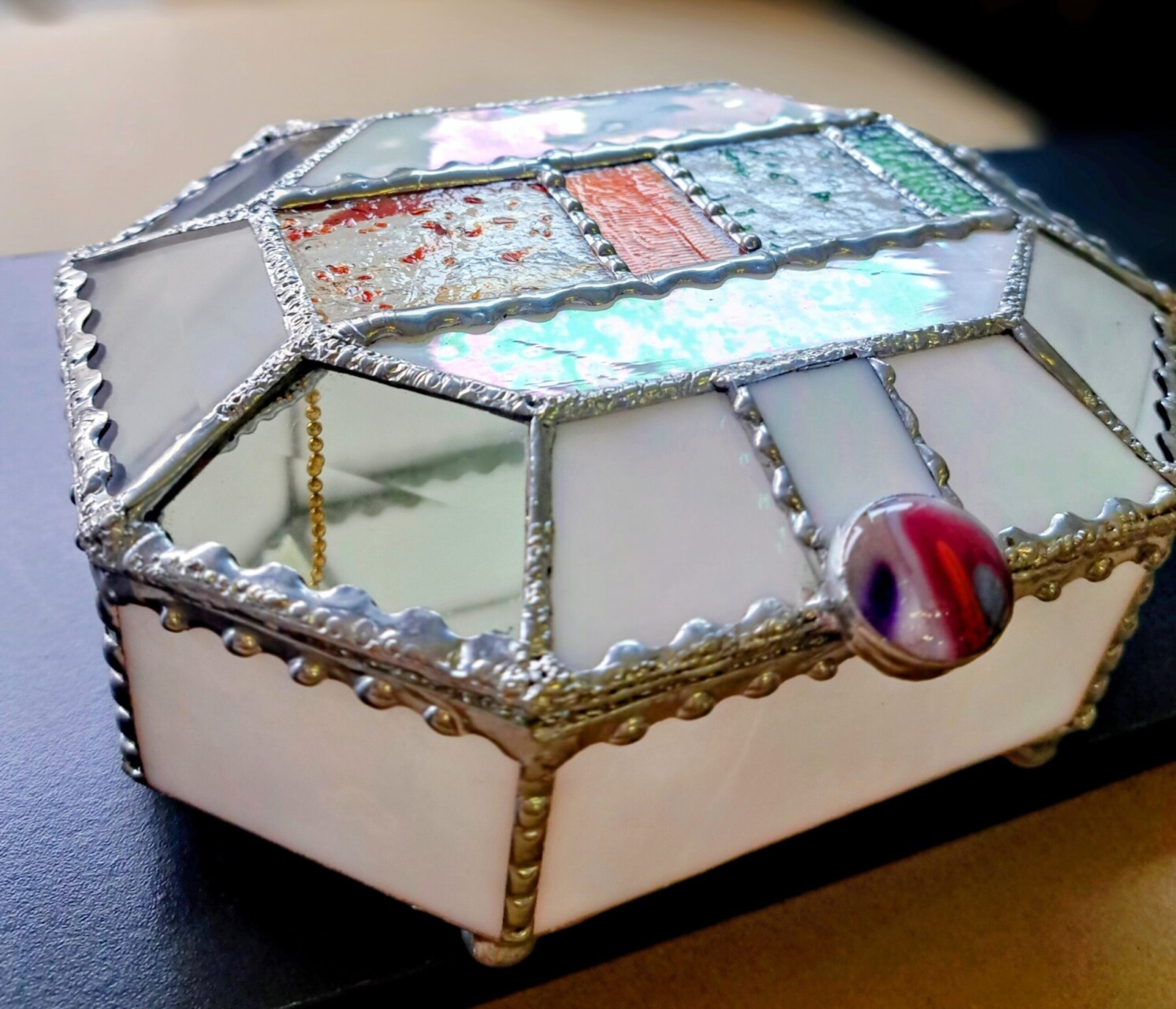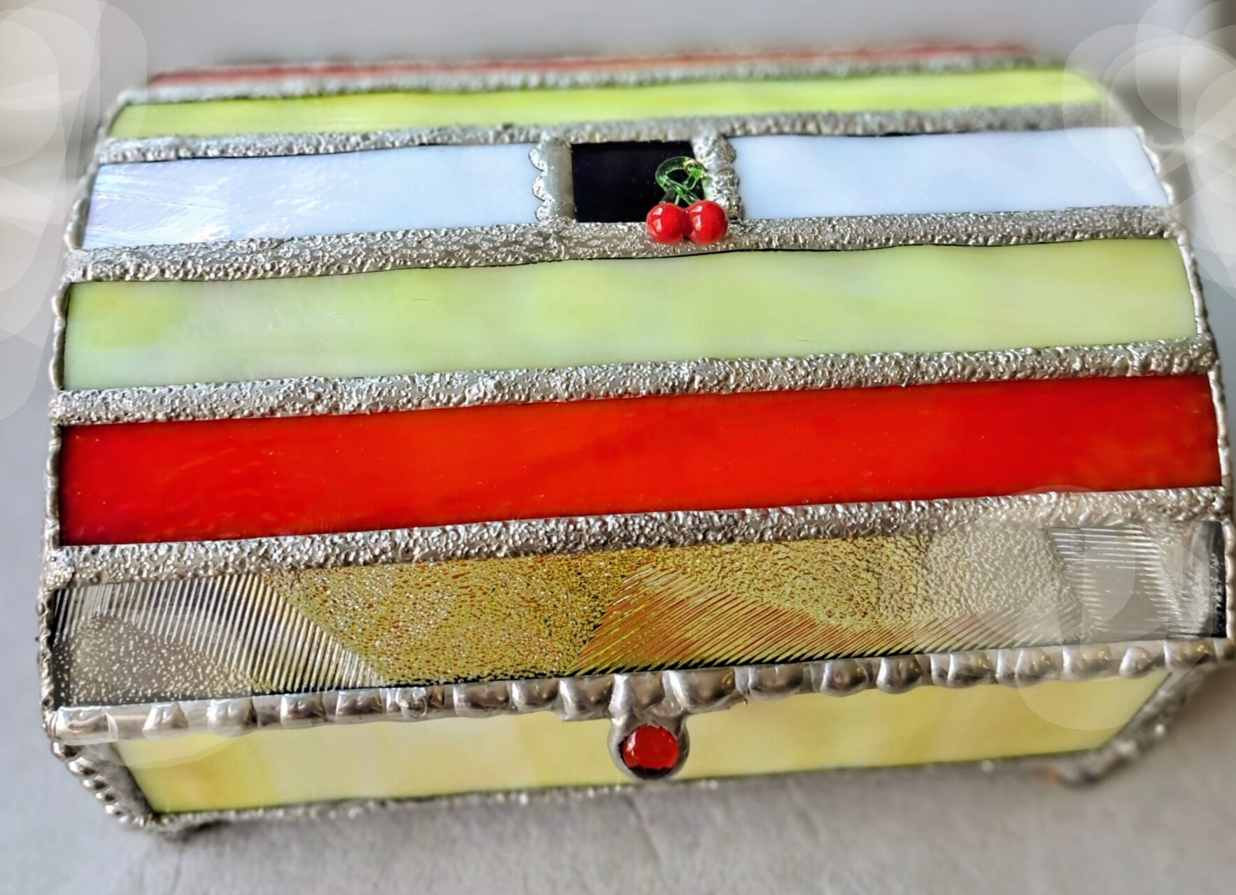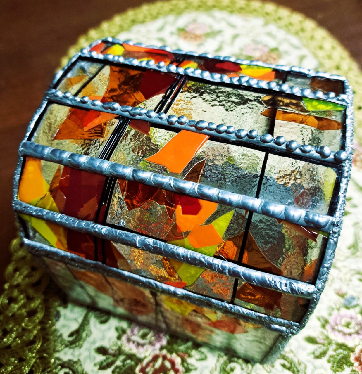 (受講)フリーチケット(4講座¥11,000)で皆さんの都合の良い日時を合わせて取ります。手持ちのガラス、ハンダで、好きな色合いで作ります。 申し込み受付中。